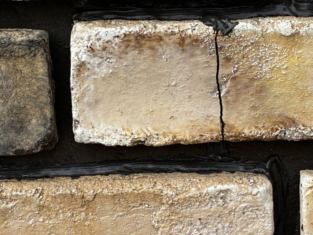タイルの天端に水切りを取り付ける事で水の侵入を防ぎ、タイルの劣化を抑えます。